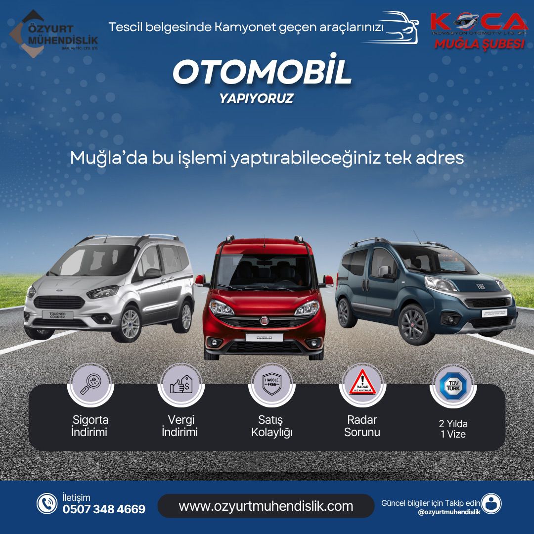 Sahip olduğunuz N1 kategori ticari kamyonet ve minibüs olan araçlarınızı M1 hususi otomobile dönüşüm projesi için bizlere ulaşabilirsiniz. Bu sayede 2 yıldan 2 yıla muayene, daha ucuz vergiler yüksek hız sınırı ve sigorta kasko harçlarında yüksek oranda ucuzlama sağlamaktayız.